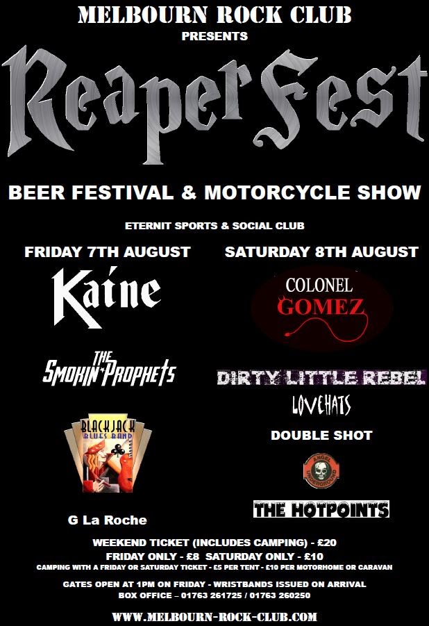 All tickets must now be pre-booked. Ticket information at www.melbourn-rock-club.com
