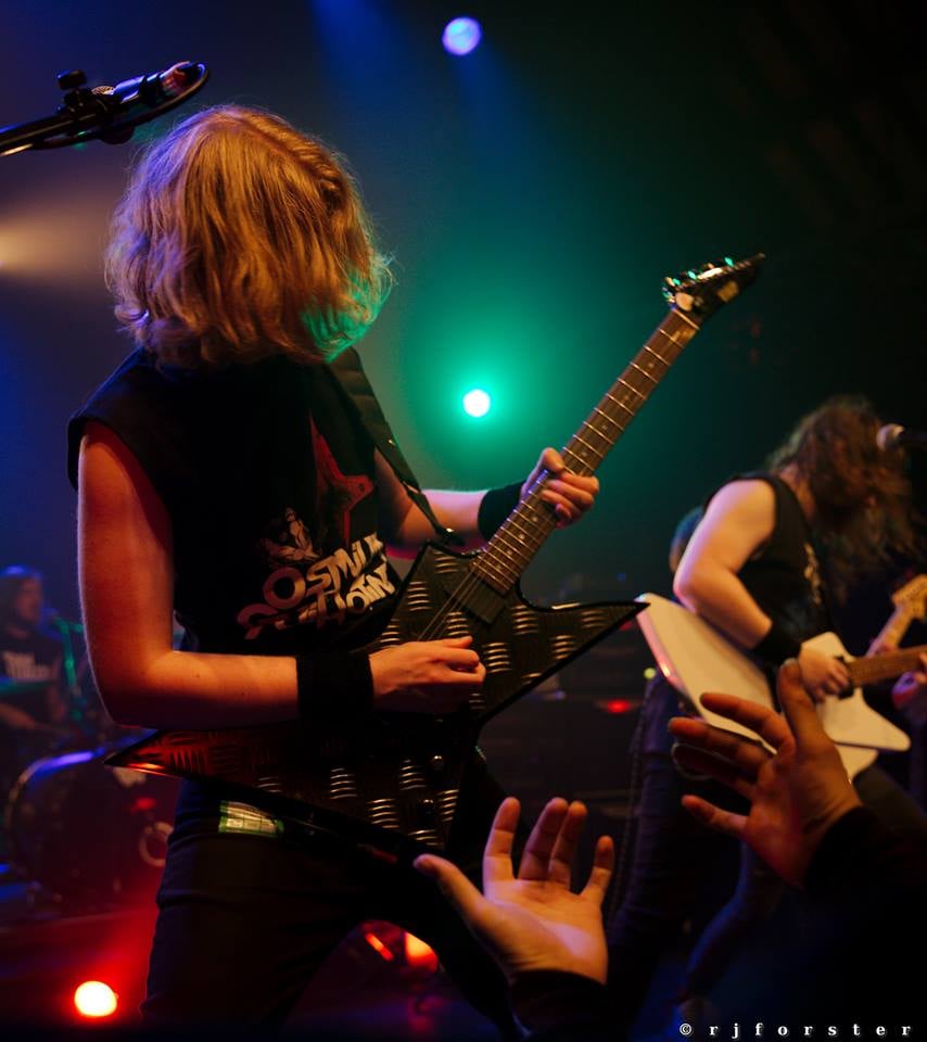 The songs on the album came together really quickly which I think reflects on how well we all work together as a band. I’m very pleased with how it came out and i enjoy every song on it. I think my favourite solo is probably the one in “Wake”. This is because I tried to make this solo more melodic that some of the others. Whilst it’s always fun to shred away, somethings it’s great to put some feeling into the notes. I’m also quite proud the solo in “Black” because it was improvised in the studio so it has never been played the same again. My favourite track is “Reforge The Steel”. Its normally the song we open a set with so it’s always a fun one and packed with energy.
