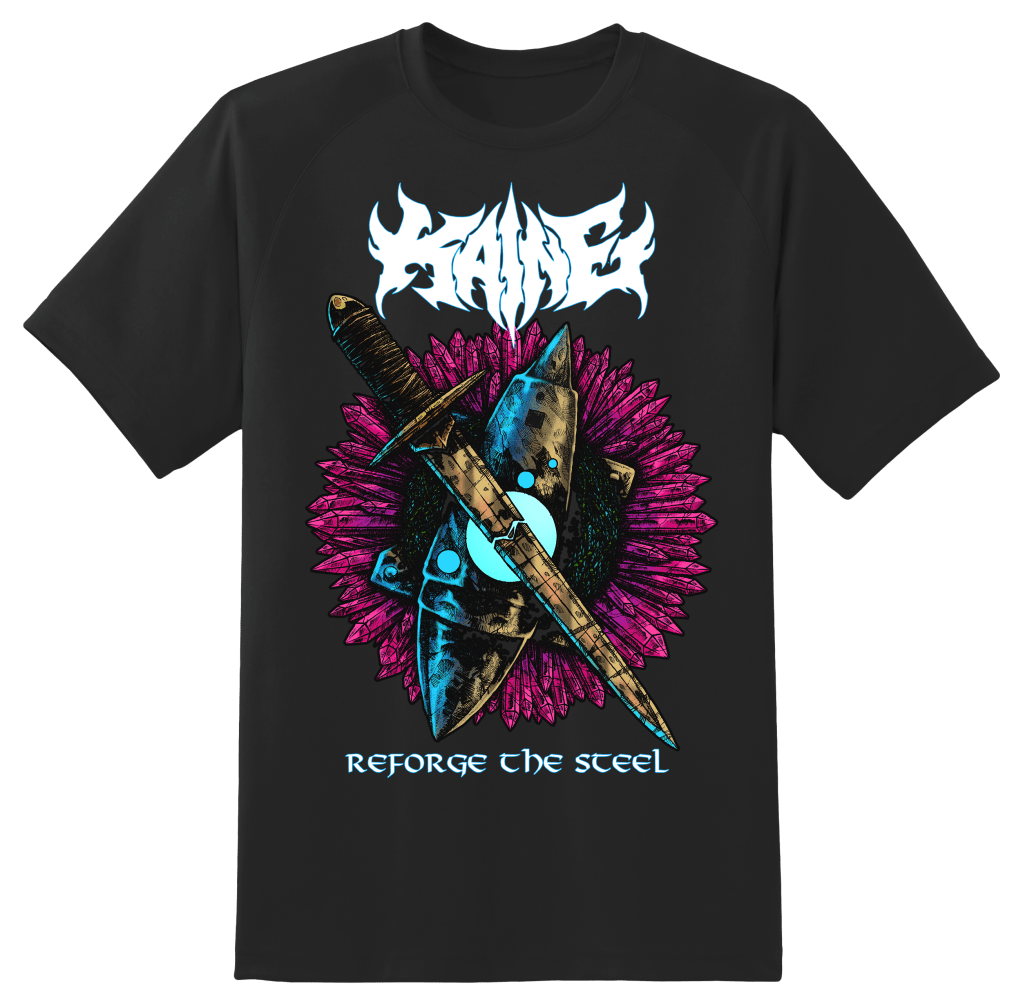 We are releasing a brand new Reforge The Steel shirt which can be pre-ordered for £12 here or bundled with a CD and a patch here. If you pre-order the t-shirt today you will get it at a discounted price before it hits the merch stand later this year. Kaine members will receive further discounts on the shirt.