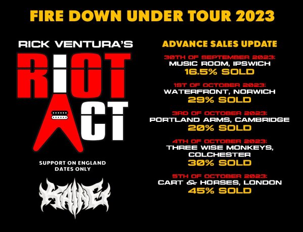 Our tour with Riot Act kicks off in just two weeks time. Riot Act will be heading over to England for a short run of dates ahead of their festival appearance at British Steel in France. They will be playing the entirety of Riot's Fire Down Under album.